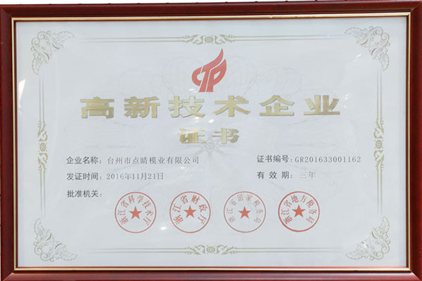 在江蘇常州成立分公司-常州點(diǎn)睛模業(yè)有限公司;并被列入臺(tái)州市級(jí)高新技術(shù)企業(yè)名列。