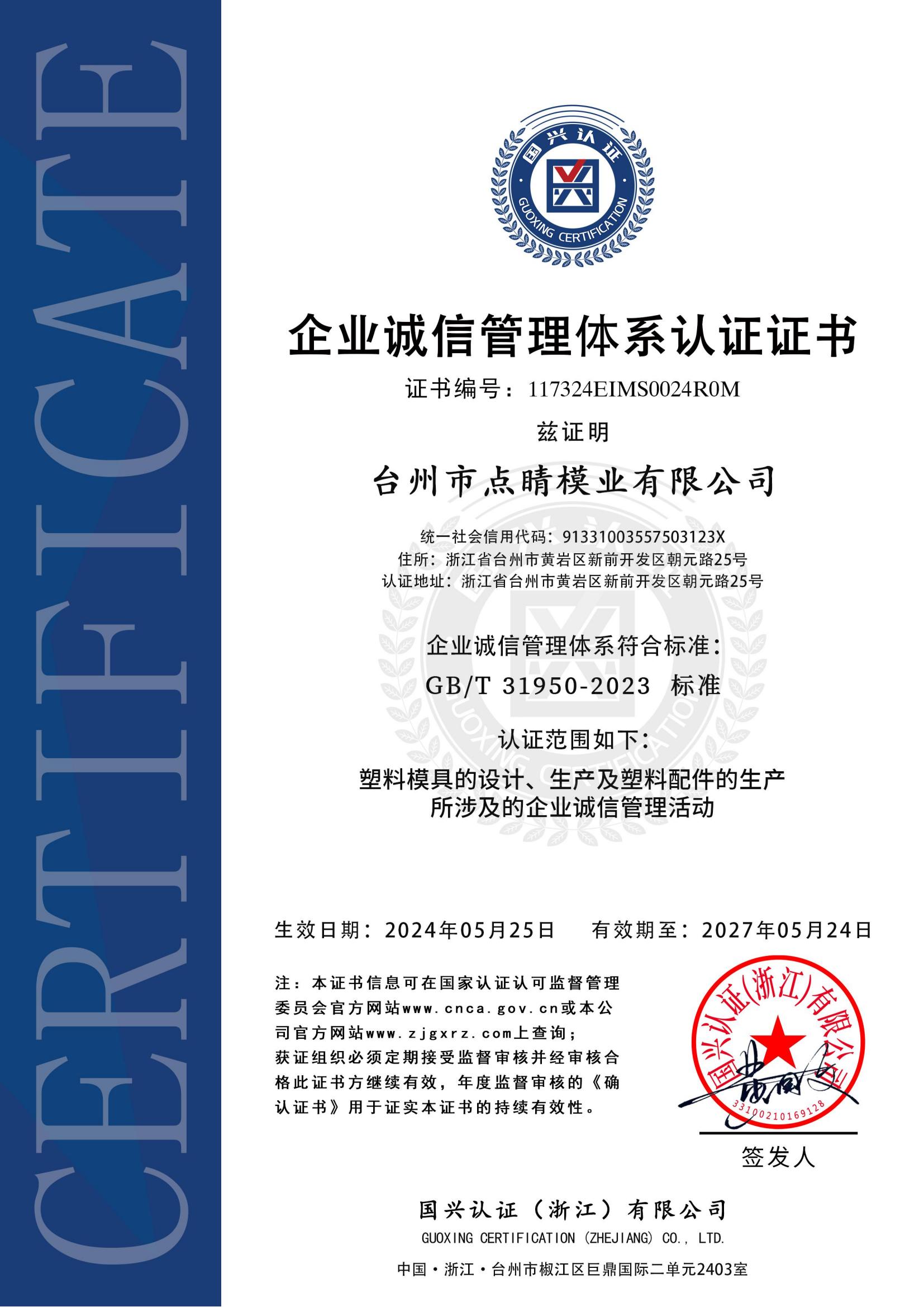 企業(yè)誠信管理體系認證 GB/T 31950-2023