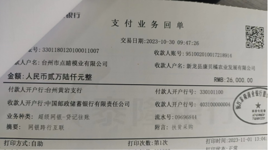 2023年10月30日,公司又向新龍縣康貝橘農(nóng)業(yè)發(fā)展有限公司扶貧采購人民幣26000元整,幫助當?shù)亻俎r(nóng)發(fā)展。